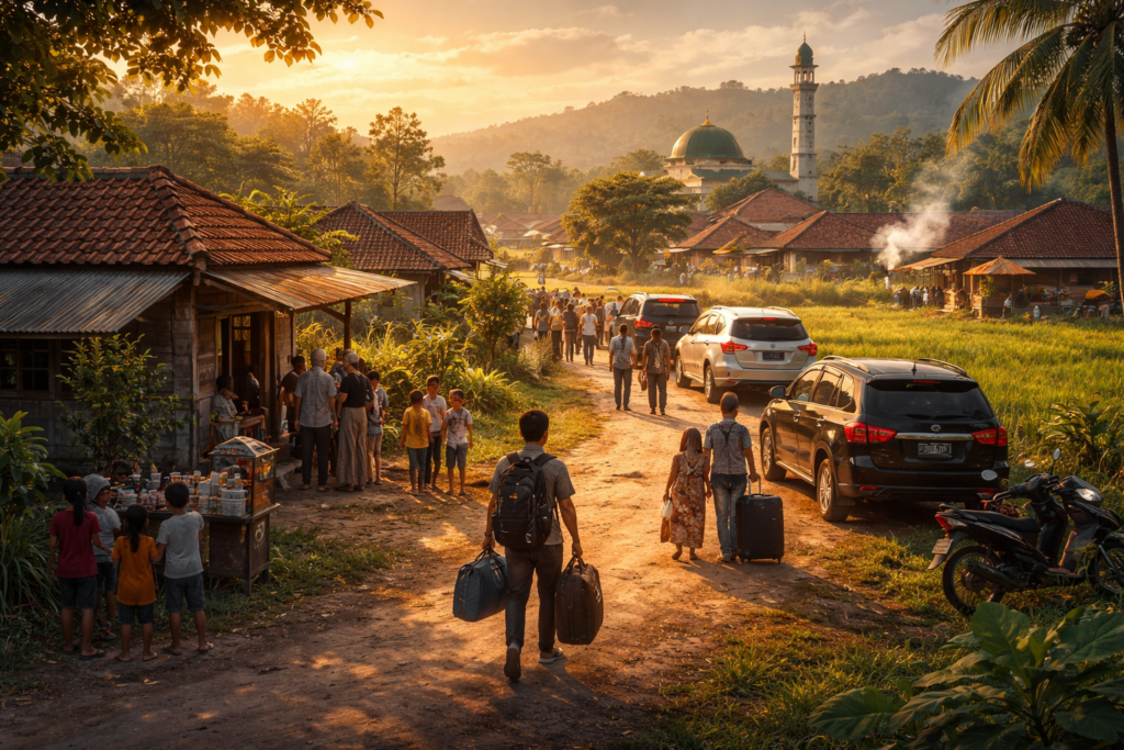 KOPIPAHIT.ID – Setiap menjelang Idul Fitri, jalan-jalan menuju kampung kecil di Jawa selalu berubah. Mobil dengan pelat kota besar datang silih berganti, membawa orang-orang yang pulang bersama rindu yang lama disimpan.