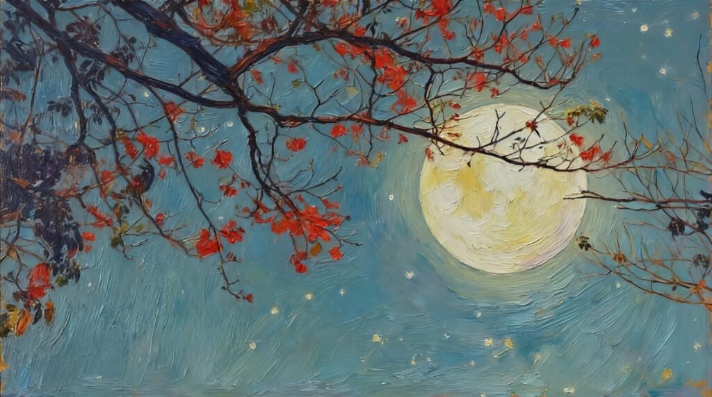 Malam itu, langit seperti sedang menahan sesuatu. Bulan purnama menggantung utuh—terlalu terang untuk sekadar disebut indah, terlalu dingin untuk disebut ramah.